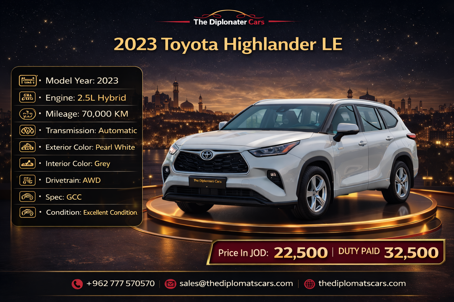 Price In JOD : 22,500 Duty Free